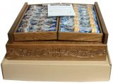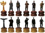 Этот эксклюзивный комплект - дань памяти русским воинам, положившим свои жизни в самой кровопролитной войне XX века. Доска в данном наборе выполнена из массива черного горного дуба и украшена тематической резьбой по краю игрового поля. Поле набрано из попеременно расположенных клеток черного (америсканский орех или копченый дуб) и светлого (клен) сортов шпона. Действующими лицами, - фигурами - выступают миниатюрные солдатики, отлитые и покрашенные вручную российскими мастерами. Фигурки убираются в выдвижные ящики (войска Красной Армии в один, немецкие войска в другой). Для каждой фигуры предусмотрен отдельный мягкий ложемент. На противоположных боковых торцах доски вырезаны ордена красного знамени, - самые распространенные ордена армии-победителя и года начала и конца Великой Отечественной Войны. На ящиках вырезаны названия всех тринадцати Городов-Героев.