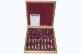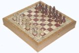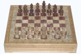 Это один из самых привлекательных наборов каменных шахматных фигур в нашем ассортименте. Его весомость складывается из увесистости двух различных видов мрамора, из которого выполнены фигуры и игровое поле, и тяжести белого скального дуба, массив которого использован при изготовлении самой доски и оклада игрового поля. "Черные" фигуры этого комплекта выполнены из красного оникса, а "белые" из мрамора-ракушечника. При всем при этом в эти шахматы очень удобно играть. Характеристики этого набора полностью соответствуют запросам любителей этой древней игры: