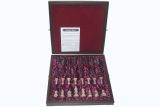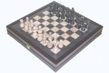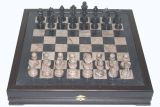 Это, пожалуй, самый увесистый набор шахматных фигур в нашем ассортименте. Его весомость складывается из увесистости мрамора, из которого выполнены фигуры и игровое поле, и тяжести экзотичного венге, массив которого использован при изготовлении самой доски и оклада игрового поля. Фигуры в этом наборе выполнены из черного мрамора и прекрасного розового мрамора. При всем при этом в эти шахматы очень удобно играть. Характеристики этого набора полностью соответствуют запросам любителей этой древней игры: