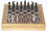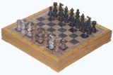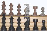 Это самый увесистый набор шахматных фигур в разряде компактных в нашем ассортименте. Его весомость складывается из увесистости камня, из которого выполнены фигуры и игровое поле, и тяжести древесины черешни, массив которой использован при изготовлении самой доски и оклада игрового поля. При всем при этом в эти шахматы очень удобно играть. Характеристики этого набора полностью соответствуют запросам любителей этой древней игры: