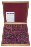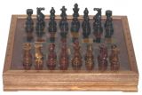 Это один из самых привлекательных наборов каменных шахматных фигур в нашем ассортименте. Его весомость складывается из увесистости двух различных видов камня, из которого выполнены фигуры и игровое поле, и тяжести экзотичного красного дерева, массив которого использован при изготовлении самой доски и оклада игрового поля. "Черные" фигуры этого комплекта выполнены из черного мрамора, а "белые" из красного оникса. При всем при этом в эти шахматы очень удобно играть. Характеристики этого набора полностью соответствуют запросам любителей этой древней игры: