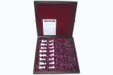 - Внутри доски есть мягкие ложементы для каждой фигуры. Внутренняя сторона игрового поля покрыта красным флоком, что предохраняет фигуры и доску от взаимных механических воздействий.