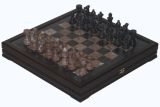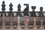 Это, пожалуй, самый увесистый набор шахматных фигур в нашем ассортименте. Его весомость складывается из увесистости мрамора, из которого выполнены фигуры и игровое поле, и тяжести экзотичного венге, массив которого использован при изготовлении самой доски и оклада игрового поля. Фигуры в этом наборе выполнены из черного мрамора и прекрасного розового мрамора. При всем при этом в эти шахматы очень удобно играть. Характеристики этого набора полностью соответствуют запросам любителей этой древней игры:
