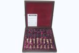 Внутри доски есть мягкие ложементы для каждой фигуры. Внутренняя сторона игрового поля покрыта красным флоком, что предохраняет фигуры и доску от взаимных механических повреждений.