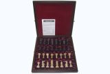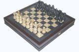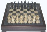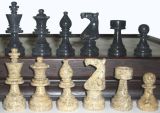 Это, пожалуй, самый увесистый набор шахматных фигур в нашем ассортименте. Его весомость складывается из увесистости мрамора, из которого выполнены фигуры и игровое поле, и тяжести экзотичного венге, массив которого использован при изготовлении самой доски и оклада игрового поля. Фигуры в этом наборе выполнены из черного мрамора и мрамора-ракушечника. При всем при этом в эти шахматы очень удобно играть. Характеристики этого набора полностью соответствуют запросам любителей этой древней игры: