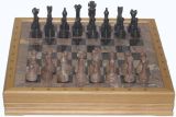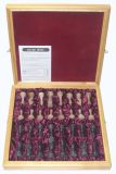 Это самый увесистый набор шахматных фигур в разряде компактных в нашем ассортименте. Его весомость складывается из увесистости камня, из которого выполнены фигуры и игровое поле, и тяжести древесины черешни, массив которой использован при изготовлении самой доски и оклада игрового поля. При всем при этом в эти шахматы очень удобно играть. Характеристики этого набора полностью соответствуют запросам любителей этой древней игры: