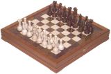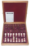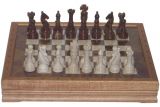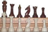 Это один из самых привлекательных наборов каменных шахматных фигур в нашем ассортименте. Его весомость складывается из увесистости красного оникса и мрамора с приятным названием бутичина, из которых выполнены фигуры и игровое поле, и тяжести экзотичного красного дерева, массив которого использован при изготовлении самой доски и оклада игрового поля. "Черные" фигуры этого комплекта выполнены из красного оникса, а "белые" из белого мрамора. При всем при этом в эти шахматы очень удобно играть. Характеристики этого набора полностью соответствуют запросам любителей этой древней игры: