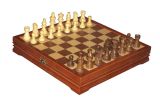 - Фигуры выточены вручную: светлые из самшита, а темные из розового дерева. Высота короля - 2,75 дюйма (около 7 см).