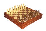 - Фигуры выточены вручную: светлые из самшита, а темные из розового дерева. Высота короля - 2,75 дюйма (около 7 см).