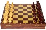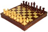 Эта эксклюзивная классическая доска предназначена не для всех... Материалы из которых она выполнена заставляют трижды задуматься при приобретении. Черные фигуры выполнены из массива драгоценного красного сандала; белые из массива самшита. Доска выполнена вручную из массива красного дерева. Этот набор традиционно большой, - из подобных материалов редко делаются фигуры не соответствующие стандарту 4". При всем при этом в эти шахматы очень удобно играть. Характеристики этого набора полностью соответствуют запросам любителей этой древней игры: