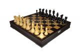 Это замечательный набор. Фигуры в этом наборе действительно "черные" и действительно "белые". Черные выполнены из массива драгоценного черного дерева - эбена; белые из массива самшита. Доска в данном наборе под стать фигурам, - выполнена из венге. При всем при этом в эти шахматы очень удобно играть. Характеристики этого набора полностью соответствуют запросам любителей этой древней игры: