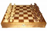- Внутри доски есть отделения для каждой фигуры. Решетка выполнена из березы, в результате чего фигуры не деформируются.
