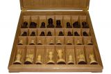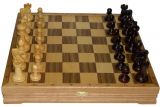 - Внутри доски есть отделения для каждой фигуры. Решетка выполнена из массива дуба, в результате чего фигуры не деформируются.