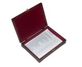 Размер внутренней полости шкатулки позволяет хранить в ней документы формата А4 или упаковать в неё подарочную плакетку такого же размера.