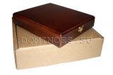 Компактная шкатулка для двух валют, выполненная из полированного массива березы, тонированного под орех.