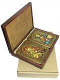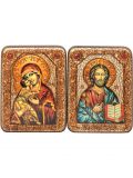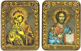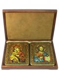 Венчальная пара инкрустированных подарочных икон «Владимирская икона Божией Матери» и «Господь Вседержитель» на мореном дубе (15*20 см, Россия) в подарочной коробке
