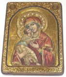 Живописная икона "Образ Владимирской Божьей Матери" на мореном дубе