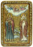 Инкрустированная живописная икона Петр и Февронья (29*42 см, Россия) на натуральном кипарисе в подарочной коробке
