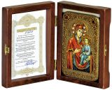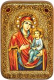 Инкрустированная рукописная икона Божией Матери Скоропослушница (10*15 см, Россия) на натуральном мореном дубе, в подарочной коробке