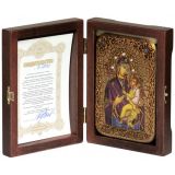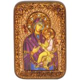Инкрустированная рукописная икона Божией Матери Скоропослушница (10*15 см, Россия) на натуральном мореном дубе, в подарочной коробке
