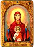 Инкрустированная Живописная икона Образ Божией Матери Знамение (21*29 см, Россия) на натуральном кипарисе в подарочной коробке