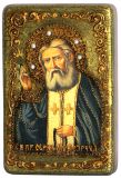 Настольная икона "Преподобный Серафим Саровский чудотворец" (10*15 см, Россия) на натуральном мореном дубе, в подарочной коробке