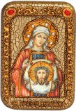 Настольная икона "Святая Праведная Вероника Кровоточивая" на мореном дубе