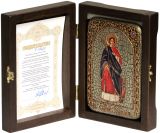 Настольная икона "Святая великомученица Екатерина" (10*15 см, Россия) на натуральном мореном дубе, в подарочной коробке