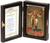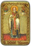 Настольная икона "Святитель Николай, архиепископ Мир Ликийский (Мирликийский), чудотворец" (10*15 см, Россия) на натуральном мореном дубе, в подарочной коробке