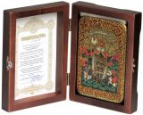 К каждой иконе прилагается номерное свидетельство с полной информацией о ней. Каждая икона поставляется в подарочной шкатулке.