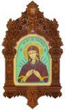 Икона выполнена на натуральной деревянной доске, изготовленной из массива сакрального кипариса. На теле иконы выбран двойной ковчег арочной формы. Образ написан вручную художницей "Мастерской РАЗДОЛЬЕ" Татьяной Угодиной. Венец иконы вручную украшен неповторимым фантазийным орнаментом.