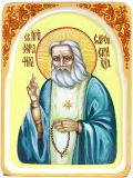 Рукописная икона "Преподобный Серафим Саровский чудотворец" на кипарисе