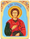 Рукописная икона "Святой Великомученик и Целитель Пантелеймон" на кипарисе